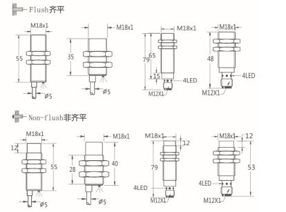 Thread size / 螺紋尺寸: M18屏蔽式 / M18非屏蔽式